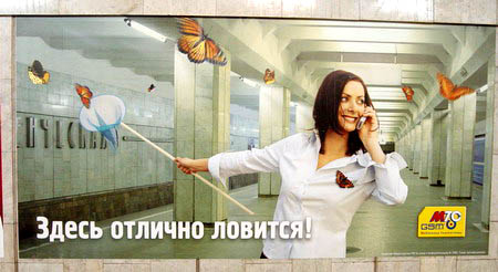 Для примера: есть реклама у МТС которая размещается в метро, - девушка с сачком ловит бабочек,а сзади фоном реклама станции метро данного города (говорят это есть во многих городах России).