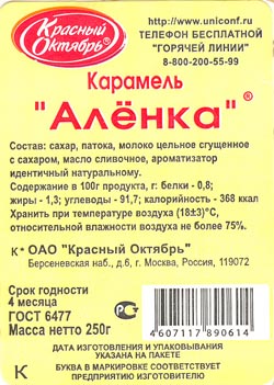 А еще они карамель "Аленка" выпустили: