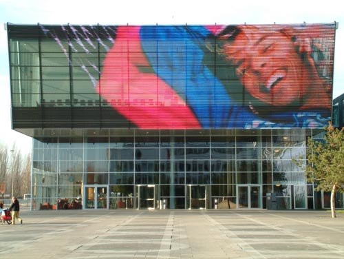 P.S. Один из примеров таких фасадов - штаб квартира T-mobile в Бонне.в этом случае на уже существующий стеклянный фасад здания была смонтирована сетка из нержавеющей стали с вшитыми в нее светодиодами. Если кого-то интересует данная тема,то могу поделиться дополнительной информацией.