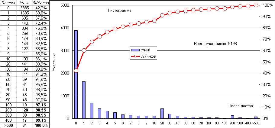 42%(3885 чел.) участников не имеют постов вообще!