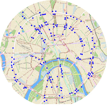 Идея. В ЦАО Москвы существуют 1859 наземных пешеходных переходов. Отобранные 170 имеют наибольшую проходимость большую часть суток. Нанесение плэйсеров предусматривается с обеех сторон перехода.