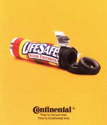 В случае с теми же покрышками можно поразворачивать мотив "заворачивания несъедобных предметов в упаковки от продуктов". Думаю, много чего найдем :)) Мебель (плита ДСП) в виде плитки шоколада, плстиковое окно в обертке эскимо - это только два примера, которые делали копирайтеры для знакомых мне рекламодателей. А раньше - не было? |