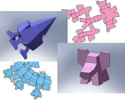 1) Есть коллекция 3D-моделей (на сегодня 256 шт), и развёрток, им соответствующих (векторный формат). Как минимум, две трети из них способны играть роль повседневной (или промо-) упаковки. Диапазон большой - игрушки, канц. приборы, предметы быта и т.д. Часть способна даже подвигнуть потребителя на коллекционирование. Либо можно разместить развёртки на обычной упаковке. Мотивировать покупателя, презентовать ему возможность что-нибудь сложить из картона на досуге. Что-то в стиле идеологии упаковок завтраков Nestle (с играми "на борту").