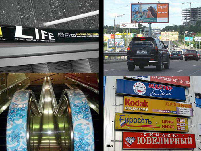 Реклама будет использовать ВСЕ возможности, которые не запрещены законом (и даже чуть больше). Это как раз то, что изменить почти невозможно. Уж точно никакие уговоры и лозунги тут не помогут. Изменить могут власти - это они разрешают ставить щиты и пр. везде и как попало. И именно они и только они в состоянии очистить город от визуального хаоса. Как пример - Дом Пашкова, который то полностью исчезает за плоскостями, то вдруг разом от них освобождается.