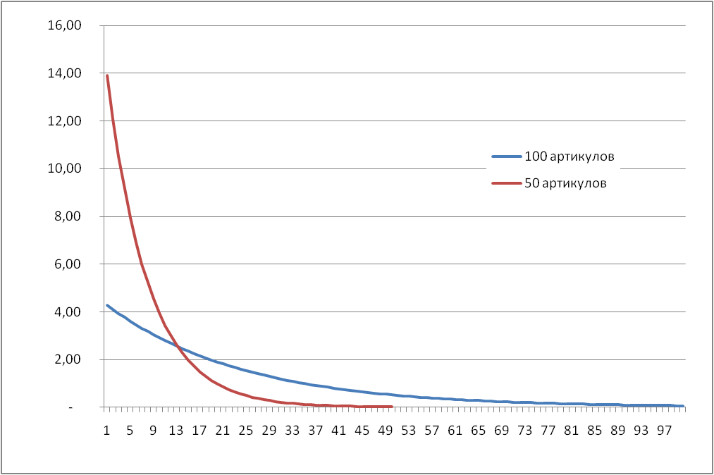 А вот если сокращать количество артикулов существенно, то картинка изменится сильнее.