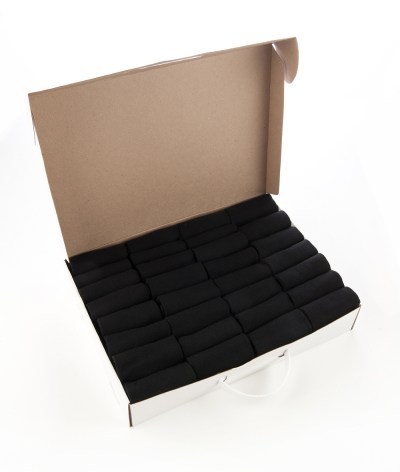 Два: а почему в коробке 28 пар одного цвета? Я бы, например, предпочёл несколько цветов, ибо не ношу только чёрную обувь и чёрные брюки. |