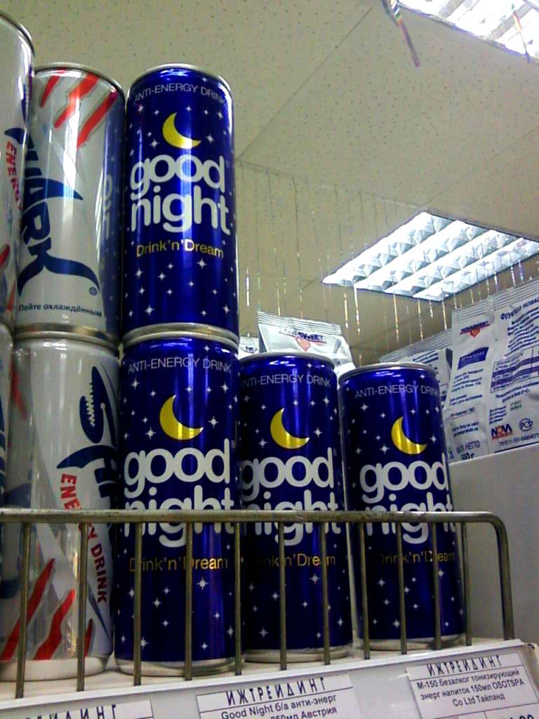 В качестве доказательства тезиса. Первый раз увидел: Anti-energy drink. В составе, кроме всяких вкусовых вещей, валериана, лаванда, еще какая-то фигня. Производство Австрия. Даже упаковка без инфы на русском, просто наклейка сверху. Стоит... 94 рябчика. :)