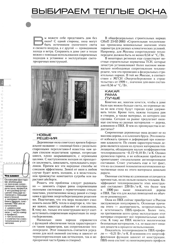 Есть еще одна тонкость. Дело в том, что для наших широт не весь немецкий профиль подходит, не соответствует требованиям СНиПа. Поэтому желательно для начала узнать характеристики теплозащиты окна. Не вдаваясь в подробности, скажу, что приведенное сопротивление теплопередаче должно быть не менее 0,6. Именно эту цифру и надо услышать от компании, в которую обратились, и увидеть ее в документах на окно. Подчеркну, что это касается стандартного размера окна. Если окно увеличено по отношению к площади стены, то цифру надо смотреть отдельно в таблицах СНиПа.