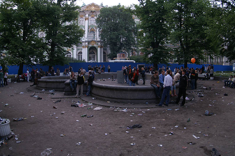 | для: Штирлиц© Ну, вообще-то, так выглядит площадь после массового "гуляния" в любой точке Земли. Разница - убирают её после мероприятия или нет... Тем более, гуляли подростки. В Москве, насколько я видел, после "школьных" загулов в ночь с субботы на воскресенье все было убрано. И все таки, чисто не там где не мусорят, а где убирают... Вы бы посмотрели на Красную плащадь сразу после празднования Нового года... Но, на утро - все как всегда. ;) |