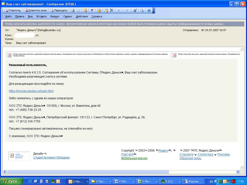 можете переслать это письмо в суппорт Яндекса, они Вам кинут письмецо с разъяснениями что к чему.