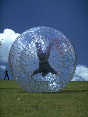 Чтобы потопить стандартный Зорб, накачанный 13 кубометрами воздуха, необходимо поместить в его внутреннюю камеру тело весом 1300 кг.