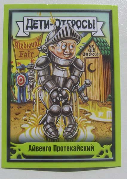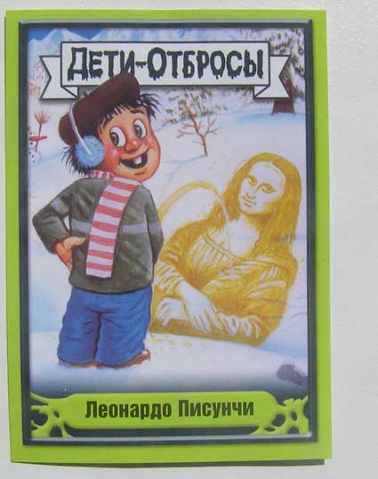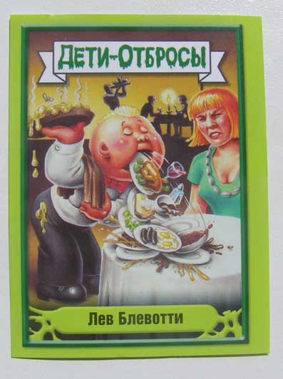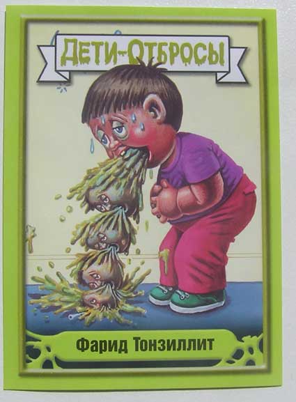"...Речь идет о серии карточек и стикеров Garbage Pail Kids, которые появились в Америке в 1985 году и стали ее любимцами. На каждом стикере “живет” какой-нибудь мерзкий ребенок, который при этом пукает, распускает сопли, рыгает и дурачится по полной программе; при этом у каждого детки есть свое прикольное прозвище, типа Жора Засерфер или Гелла Скелетина и т.д. Карточки задумывались как гротеск пародия на хороших мальчиков и девочек, что, в общем неплохо получилось. Серия создавалась таланливыми художниками комиксов, среди которых выделялся Арт Шпигельман - впоследствии получивший Пулитцеровскую премию за антифашистскую графическую новеллу “Мышь” (Maus в оригинале). В общем, в сотрудничестве с ребятами из Topps и соавторстве с очень талантливой поэтессой из Новосибирска, мы эту тему адаптируем на русский язык (получается очень прикольно) и постараемся выпустить для всех желающих и даже нежелающих (потому что Детки достанут любого:))..."
