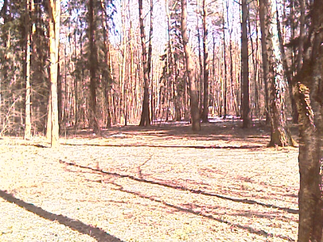 Лес в настоящее время представляет комбинацию болота с залежами снега. Есть и сухие участки. Через две недели это будут сухие участки с элементами болота. :) Поляны уже высохли (см. фото).