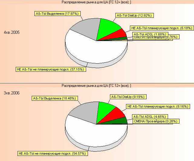 У ADSL в авг. 2006 доля 4,7% от ГС12+ или 9500*4,7%=450 тыс. аб.
