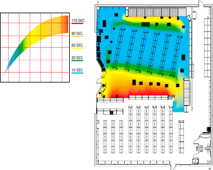 Я так понимаю, что раздают что-нибудь (фирменную ручку) бесплатно в чем спрятан пассивный (дающий сигнал только при определенном радио-облучении) недорогой датчик (полоска) с номером. И дальше смотрят, где на схеме магазина этот номер (номера) были в какое время.