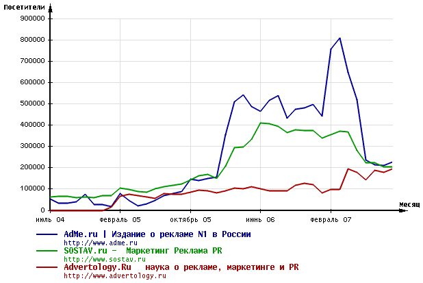 Вот статистика по "посетителям" из того же, что у тебя источника.