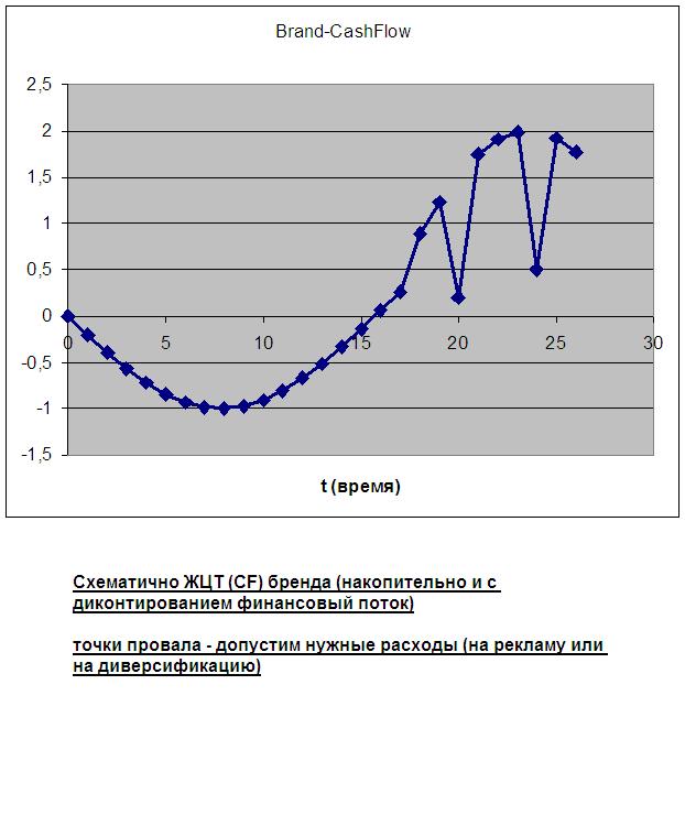 Вышеприведенная кривая, конечно - всегда коммерческая тайна, но это - всего лишь схематический вид, иначе - зачем делать бренд, если н будет потоков денег?