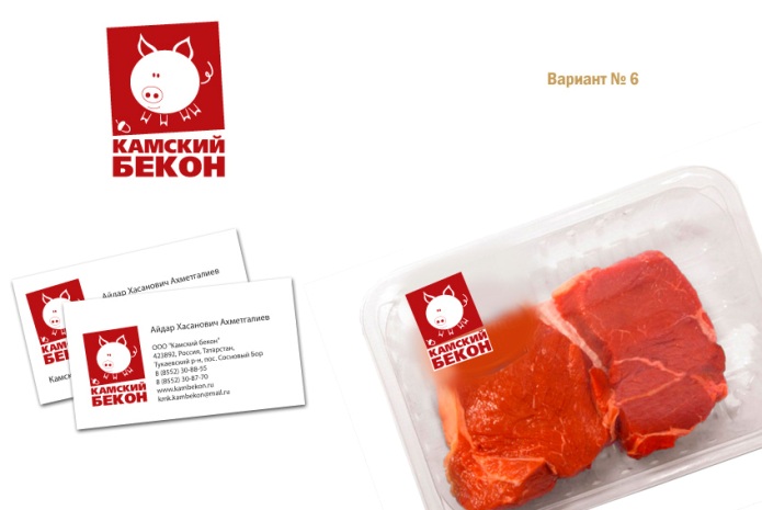 По поводу 6-го варианта поищите на форуме тему со Смешариками (недавно была) и купите уж права на использование образа Нюши, а то она только угадывается, а должна узнаваться. Так, кстати, и назовете линейку пролуктов из свинины.