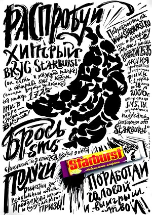 Студия ZUNGE DESIGN по заказу рекламного агентства BBDO Moscow дала своим самым шустрым буквам возможность побегать по плакату Starburst.