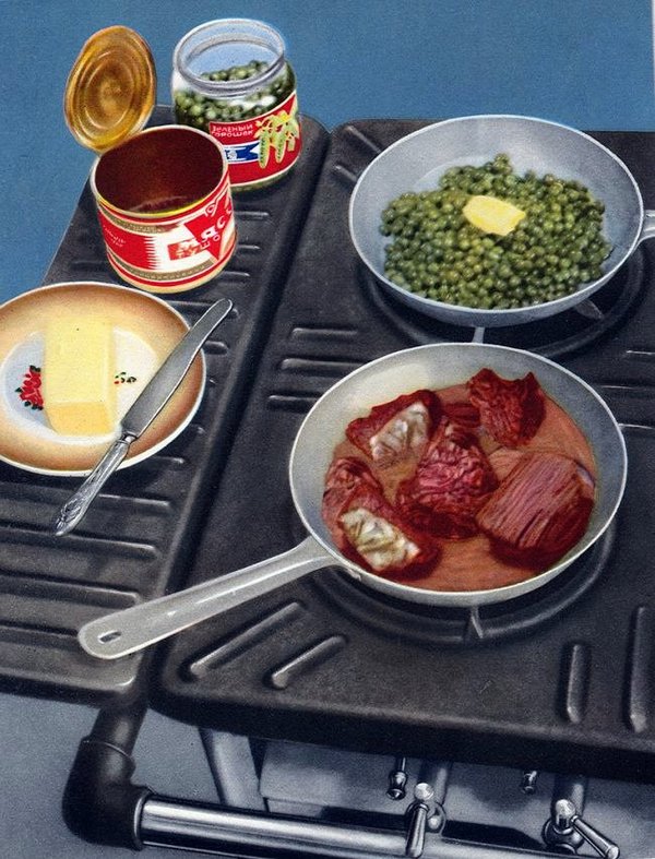 И вообще, держите себя в руках! ;) вот, я же не стал придираться к картинке с тушенкой на плите... Там все содержимое сковороды не влезет в банку - которая рядом стоит...