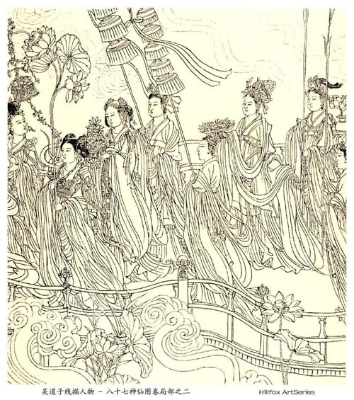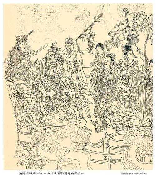 Одна из самых известных картин У Даоцзы называется «87 Святых». Она выполнена на шёлковом свитке шириной 30 см и длинной 292 см в виде контурного рисунка.
