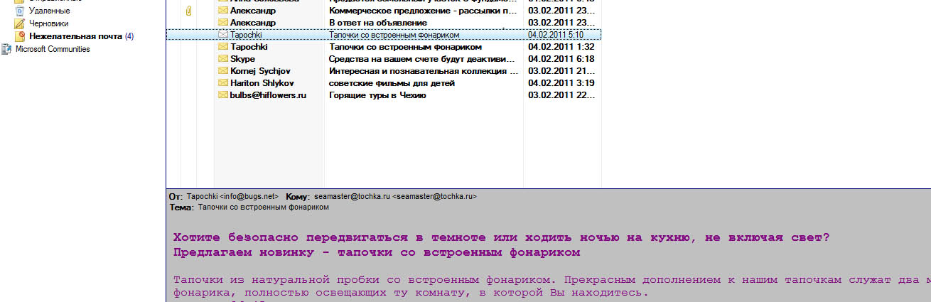 Новый вид спама с двумя фонариками? |