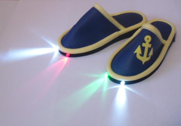 "...Тапочки - вещь сама по себе весьма полезная, особенно осенью и зимой, когда на улице совсем не жарко и пол в домах прохладный. А теплые, по-домашнему уютные тапочки, совмещенные с фонариком – вещь полезная вдвойне (втройне – ведь фонарика два). Вспомните, как часто вы вставали ночью «по делам» или просто с желанием попить, и в кромешной тьме искали путь к цели. И сколько раз сдерживали в себе бранные слова, потирая ушибленный палец ноги и вспоминая генеалогическое дерево того, что «поставил сюда этот стол/шкаф/дверь/стену» Собственно, решение проблемы элементарно – тапочки с подсветкой..."