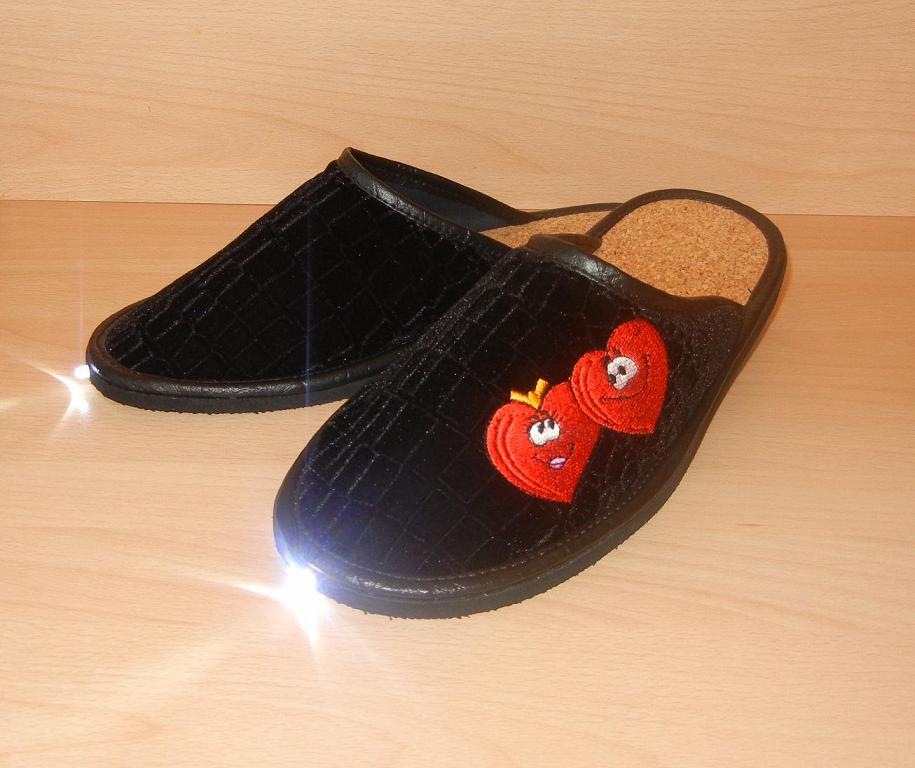 За прошедший год мы еще улучшили качество тапок: под стельку из пробки устанавливаем основу из картона (повышается износостойкость), используем новые кнопки. Еще больше укрепили светодиод. Думаем, стоит ли менять батарейный отсек на более цивильный (увеличит себестоимость на 15 р.) В детских тапках он уже новый. |