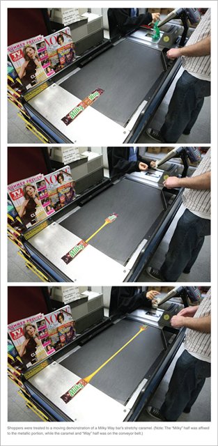 | Реклама на ленте касс в супермаркетах достаточно популярна |