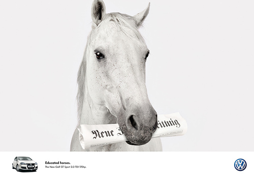Кампания "Образованные лошади" в поддержку нового VW Golf GT Sport 2.0 TDI 170hp от итальянского DDB