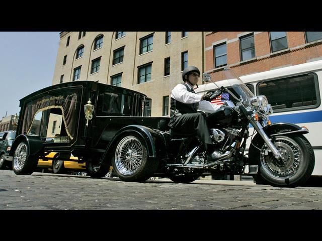 Сеть похоронных бюро на Лонг Айленде, в штате Нью-Йорк, выделила $100.000 на покупку трёхколёсного Harley-Davidson прицепного катафалка для байкеров, которые не желают отказываться от своего стиля жизни, даже отправляясь в последний путь. И, как сказал Майкл Молони из «Moloney Family Funeral Homes» во время презентации их новой услуги – реакцией было «общее одобрение и поддержка нового начанания».