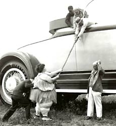 Собственно, ради этого сна все и затевалось: по сюжету во сне материализуется раздавшийся до гигантских размеров President Eight, в котором не только умещается, но и вполне себе музицирует тот самый фирменный оркестр, причем в полном составе. В наши дни снять подобное не составило бы труда - заснятых на фоне зеленого экрана музыкантов запросто бы наложили на компьютерную модель сколь угодно гигантского автомобиля. Но в 30-е такой автомобиль пришлось строить от и до - для этого задействовали 60 механиков и плотников, которые три месяца кряду работали не покладая рук. Вообще, прототипы и прочие концепт-кары лепились тогда из глины, но в случае с родстером из сна разработчики благоразумно предпочли глине сосновые доски и жесть.