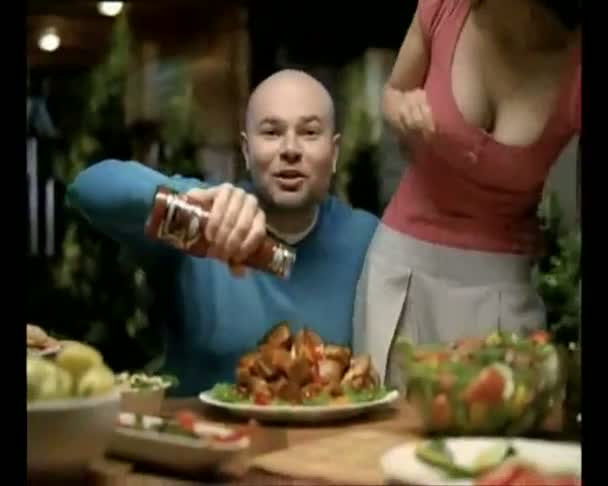 Возможно этот рекламный шедевр недооценен, и тут акцент был вовсе не на страшную часть, а на женское декольте, как, например, в приведенном вами кадре)) |