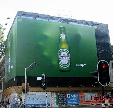 В макете этого брендмауэра нет ничего необычного - бутылка на зеленом фоне...