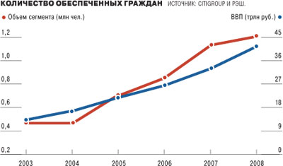 В 2008 году он составлял 1,2 млн человек (0,8% населения), которым принадлежит 4,2 трлн руб. (10% ВВП)