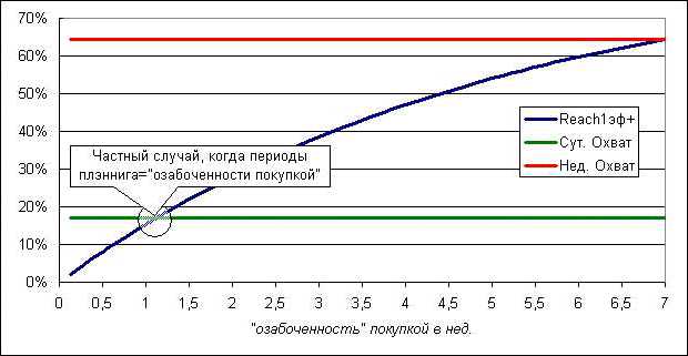 -Для частного случая: когда период плэннига = периоду «озабоченности покупкой», Reach(1эф+) найти просто, он = суточному охвату. Во всех других случаях, процедура его вычисления Reach(fэф+) уже не тривиальна [не путать с Reach(f+)]
