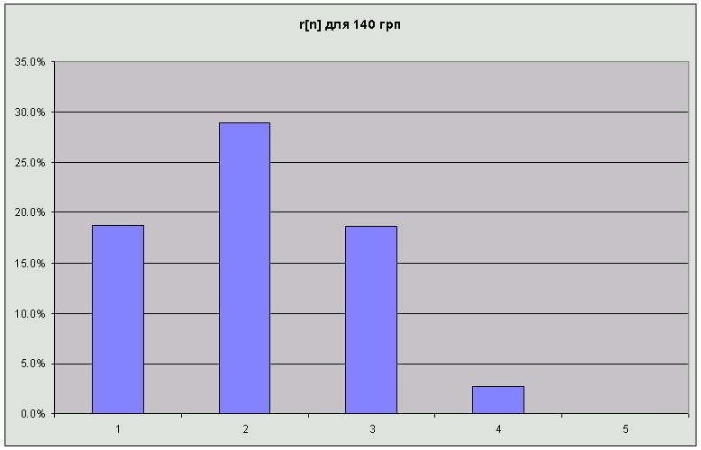 Ок. вы наверное частотное распределение охвата - назвали r(n)! (я называю это g(f)). Если это так, приведите пжл. график для r(n)(пусть и в ваших обозначениях), только не от GRP, а для конкретного GRP (к примеру 140)- покажите какое у вас частотное распределение? (т.е. для 140GRP: охвачено 1 контактом r1%, 2 контактами r2% и т.д.-сумма всех r(n) конечно должна равна Охвату1+)