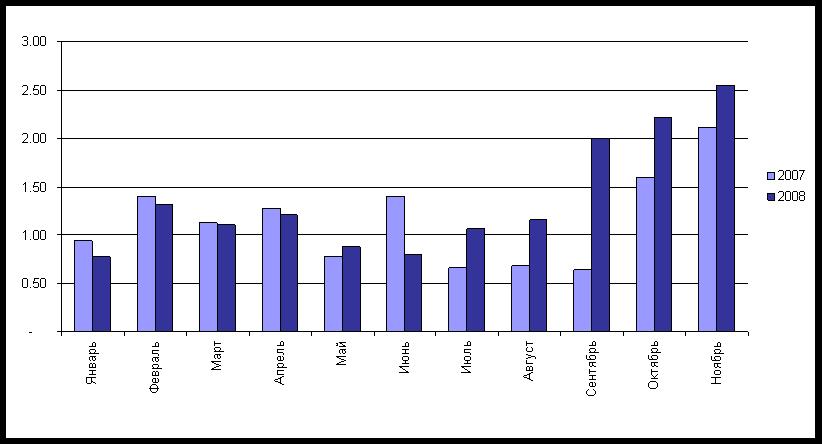 Динамика импорта вина в РФ в 2006-2008 гг.