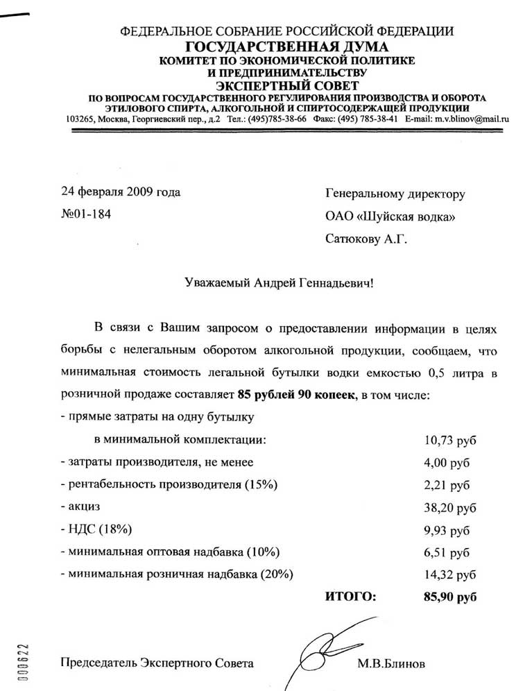 А по коньяку, вину и шампанскому у вас нет такой бумажки? :) мне хотя бы примерно понять сколько минимальная себестоимость легального коньяка, вина и шампанского....