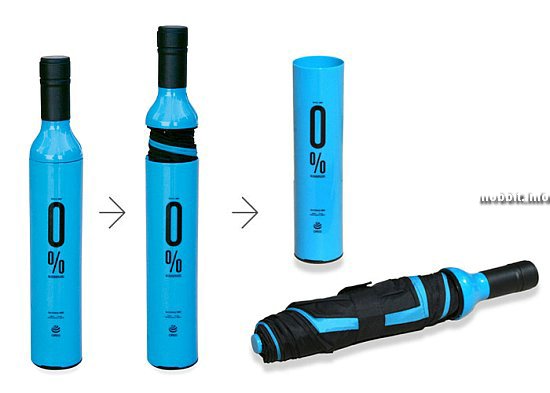 Перед вами интересный зонтик, чье название (Is.a.Brella) не более необычно, чем его чехол - как видите, он выполнен в виде бутылки вина. Японцы считают, что это не только забавно – ходить с бутылкой в руках, но и удобно - например, тем, что, зайдя в транспорт во время дождя, его можно просто сложить в этот чехол, не нервируя остальных пассажиров своим мокрым зонтом.